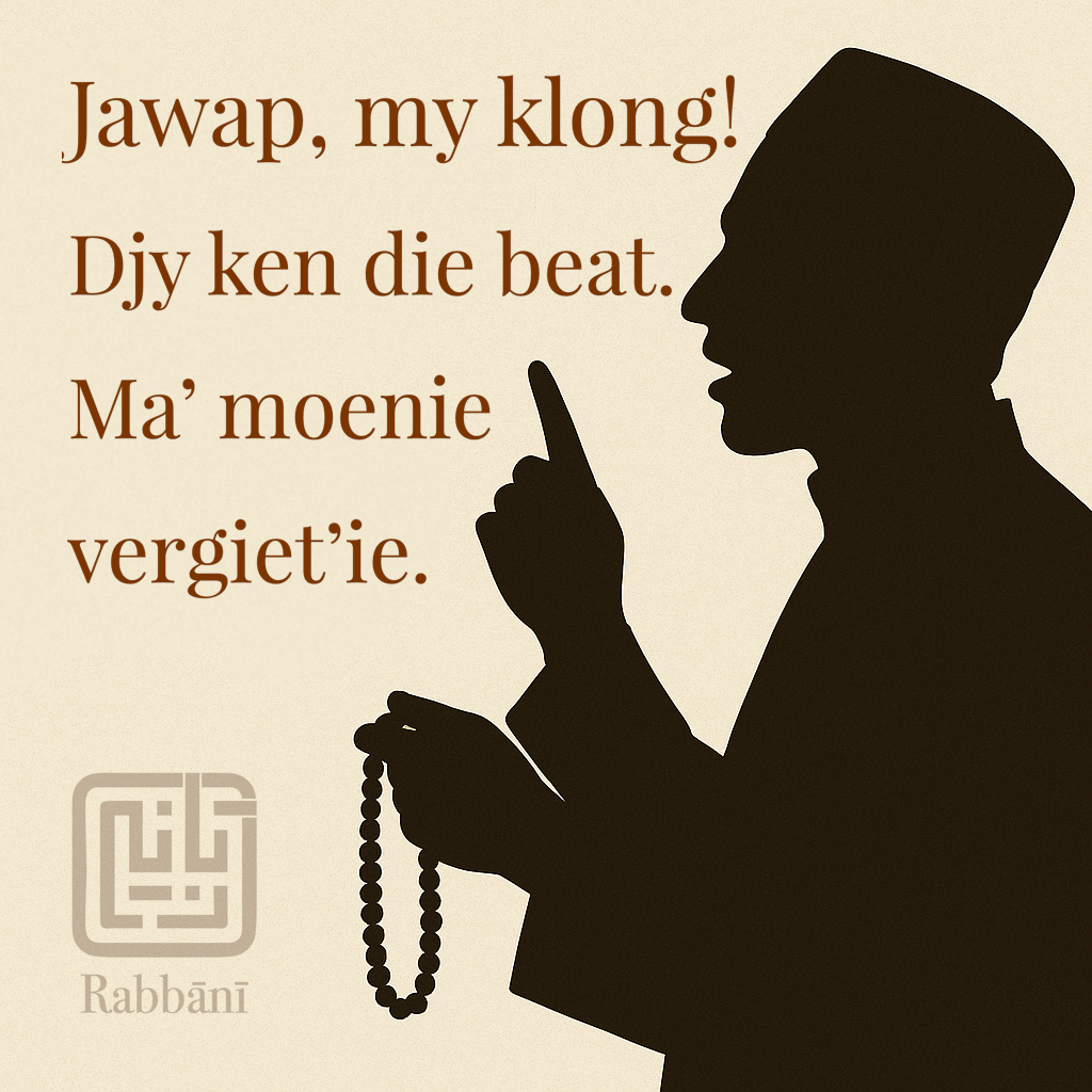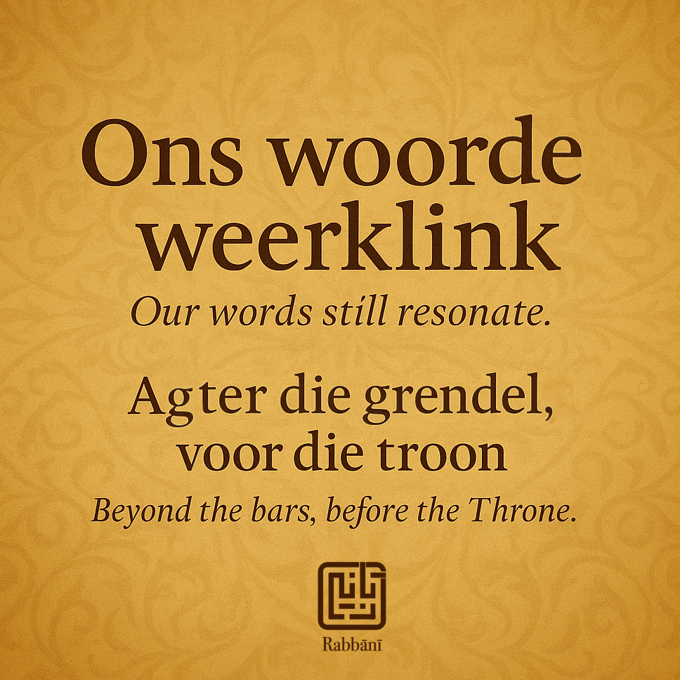 This is not the Afrikaans of the oppressor. This is the mother tongue of tasbīḥ. The language of jawap. The rhythm of remembrance. This is the tongue that taught us to speak back to the silence — and return to God with our own breath, in our own way.