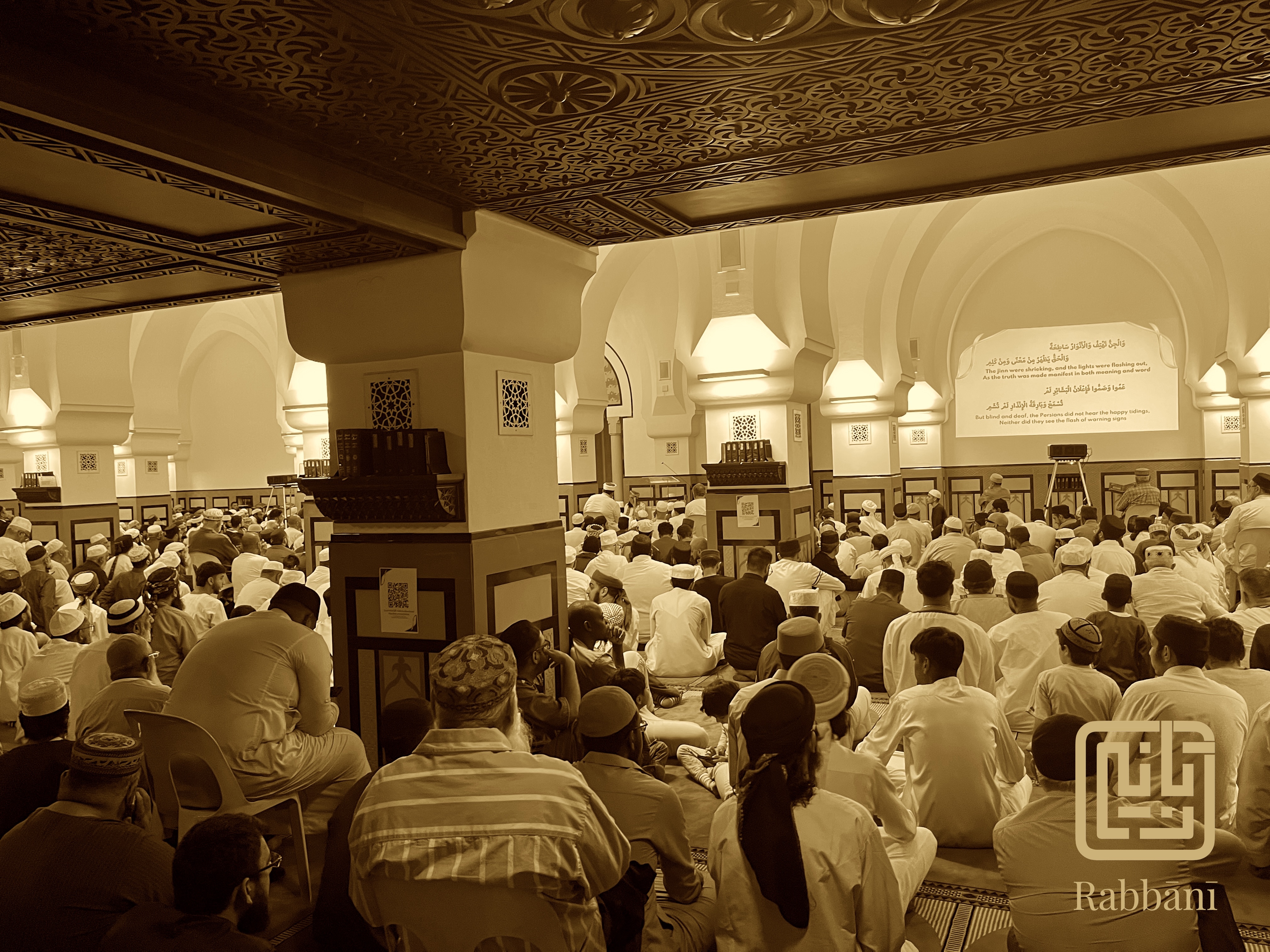Before each group began, Ml Abu Hurairah Bobat guided the gathering, introducing the chapters and themes of the Qasidah Burdah. With warmth and clarity, he explained how the verses moved from praise of the Prophet ﷺ’s birth, to his struggles, to his intercession. His words opened the door for those less familiar, making the Burdah not just recited, but understood.